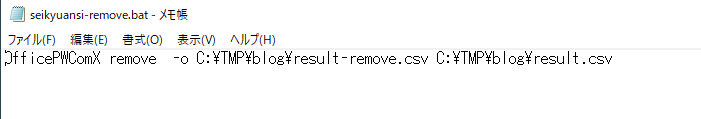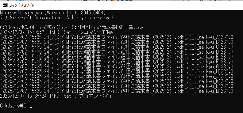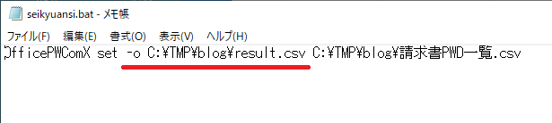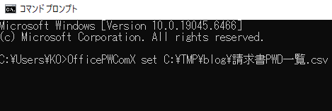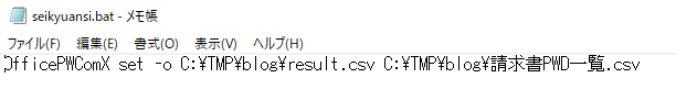 「C:\Program Files (x86)\InnovationMirai\OfficePwV5\OfficePwComX.exe set C:\TMP\blog\請求書PWD一覧.csv」
